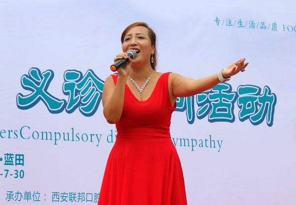 龍王廟村地處秦嶺深山之中,全村有村民300余名,常年在外打工的有100 多人,村子里平時只有留守的老人與兒童婦女。因地理位置偏、與外溝通難、可耕土地少、地質(zhì)狀況差,龍王廟村成為藍(lán)田縣最貧困的山村之一,2011年全村人均收入僅820元,是西安廣播電視臺的重點(diǎn)對口扶貧村。西安聯(lián)邦口腔醫(yī)院院長鄧邦蓮講話說,聯(lián)邦口腔擁有十分雄厚的口腔醫(yī)療技術(shù)力量,以第四軍醫(yī)大學(xué)主任醫(yī)師、教授為主體德藝雙馨的專家人數(shù)已經(jīng)達(dá)到14名,在全國民營口腔醫(yī)院中獨(dú)樹一幟,十分難得。聯(lián)邦口腔醫(yī)院的醫(yī)療設(shè)備,大到牙片CBCT,小到牙科手機(jī)材料,全全部走國際化路線,可以準(zhǔn)確而高效的實(shí)現(xiàn)對種植、基臺、修復(fù)的設(shè)計(jì),幫助種植修復(fù)計(jì)劃的制定和實(shí)施。通過極快速的掃描和圖像重建,一次掃描即可獲得全部診斷圖像,減少患者等待時間,重金購買的德國徠卡顯微鏡(Leica),它是目前同行業(yè)中唯一能夠同時提供顯微鏡、圖像采集產(chǎn)品、圖像分析軟件一款顯微鏡。上午十點(diǎn),火辣辣的太陽難擋人們的激情,全村孤寡老人、空巢老人以及留守兒童婦女200多人齊聚龍王廟村廣場。歌聲、笑聲、掌聲不時從演出現(xiàn)場傳出,和著明媚的陽光灑向秦嶺深處。西安清琴社的孩子們?yōu)楝F(xiàn)場觀眾帶來了舞蹈、歌曲、二胡、小提琴等精彩演出,贏得全場掌聲。秦歌十三郎弟子們也帶來了《父老鄉(xiāng)親》《他大舅》等膾炙人口的歌曲,點(diǎn)燃了現(xiàn)場觀眾的熱情。聯(lián)邦口腔醫(yī)院的醫(yī)護(hù)人員帶來了一段舒展優(yōu)美的瑜伽表演,完美地展示了醫(yī)護(hù)工作者多才多藝的一面。最后出場的是來自陜西三原的中國首屆知青春晚、民間春晚、陜西旅游形象大使、星光大道選手張靜。她的一首《就戀這把土》 讓西北風(fēng)再次勁爆中華,感動了三秦千萬兒女對這片黃土的熱戀。一首《長安情歌》讓人陪感親切的歌詞和悠揚(yáng)的旋律,拉近了演員與觀眾的距離,贏得了現(xiàn)場觀眾熱烈而持久的掌聲,將整臺節(jié)目推向了高潮。隨后龍王廟村村委會為“模范好兒媳”田全芳、王春香送去了牌匾和聯(lián)邦口腔醫(yī)院提供的禮品。同時,值此八一建軍節(jié)來臨之際,西安聯(lián)邦口腔醫(yī)院的醫(yī)護(hù)人員也給該村退伍老軍人送來了大米和糧油等慰問品,和老兵們一起分享那崢嶸歲月里的點(diǎn)點(diǎn)滴滴,詳細(xì)的了解了他們的生活情況和身體狀況,表達(dá)醫(yī)院對他們的關(guān)心與關(guān)懷。演出結(jié)束后,診臺被前來就診和咨詢的村民們圍得滿滿的。西安聯(lián)邦口腔醫(yī)院的醫(yī)護(hù)人員與老人們親切交談,仔細(xì)詢問老人們的身體情況、耐心講解老年疾病防治和飲食起居的注意事項(xiàng)。了解老人之前的用藥情況,細(xì)心講解病因、病理和用藥常識,講解相關(guān)疾病的預(yù)防知識、生活中應(yīng)注意的事項(xiàng)等。聯(lián)邦口腔醫(yī)院醫(yī)護(hù)人員和慰問演出文藝人員合影此次活動旨在弘揚(yáng)中華民族敬老愛老的傳統(tǒng)美德,用實(shí)際行動把黨的溫暖送老人手中?;顒拥玫搅死先藗兊囊恢潞迷u,廣大村民在對此次活動稱贊的同時更多的是表達(dá)了他們的愿望,希望這些接地氣、貼近老百姓生活的活動能多舉辦幾次,滿足他們的就醫(yī)難、對文化的精神需求。