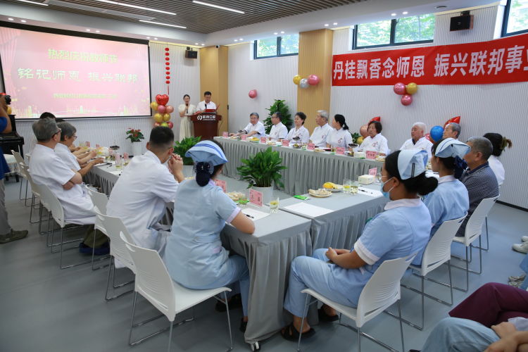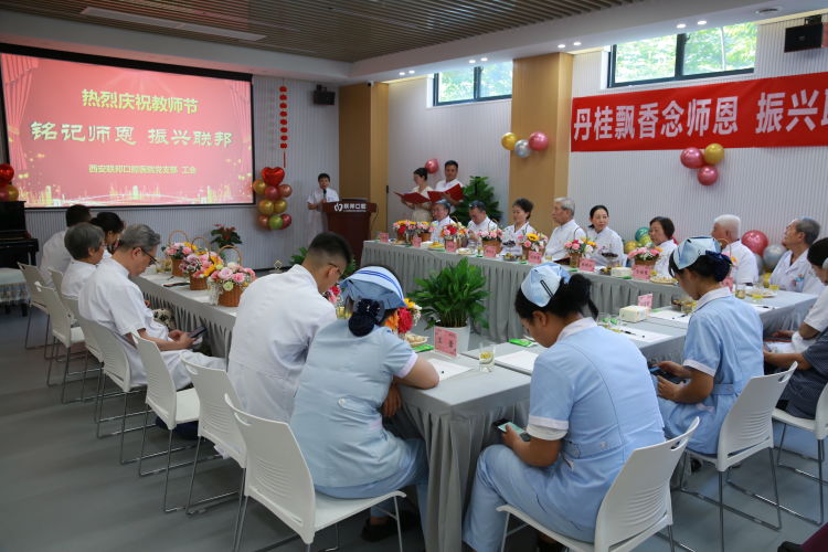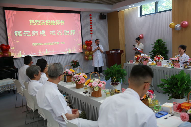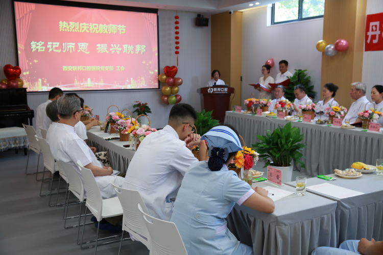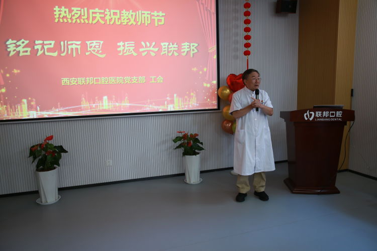 “躬耕教壇,強(qiáng)國有我”。9月8日下午,在第39個(gè)教師節(jié)來臨之際,西安聯(lián)邦口腔醫(yī)院一場(chǎng)“銘記師恩、振興聯(lián)邦”為主題慶?;顒?dòng),在碑林醫(yī)院會(huì)議室隆重舉行,原第四軍醫(yī)大學(xué)口腔醫(yī)院郭天文教授、張桂云教授、斯方杰教授、米延玲教授、邵金陵教授、于培寬教授、李剛教授、馬振國教授等十多位專家和聯(lián)邦口腔醫(yī)院鄧邦蓮院長、醫(yī)護(hù)和管理人員代表,共50多人參加了活動(dòng)。