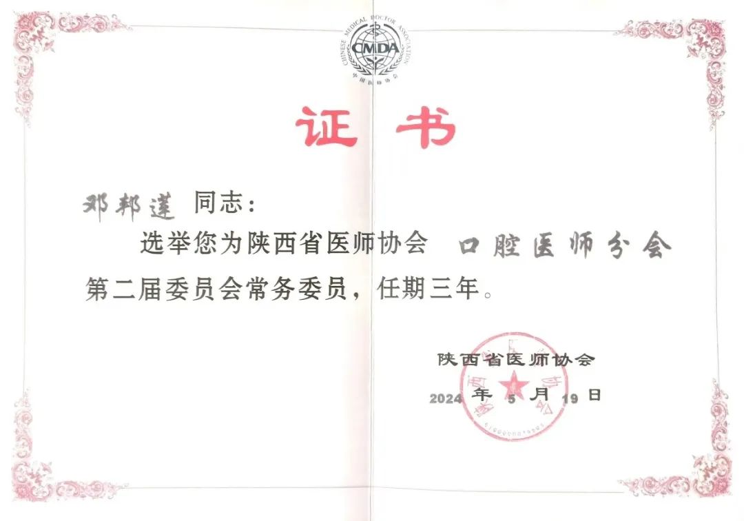 此次鄧邦蓮院長成功當選陜西省醫(yī)師協(xié)會口腔醫(yī)師分會第二屆委員會常務委員。不僅是對她多年來從事基層口腔醫(yī)療工作的肯定,更是對西安聯(lián)邦口腔醫(yī)院醫(yī)療團隊的認可與鼓勵。今后,西安聯(lián)邦口腔醫(yī)院將繼續(xù)努力,不斷提高口腔醫(yī)學技術水平和服務質(zhì)量,促進口腔醫(yī)學科學技術知識的普及,促進口腔醫(yī)學人才的成長,為推動全民口腔健康的發(fā)展貢獻力量。