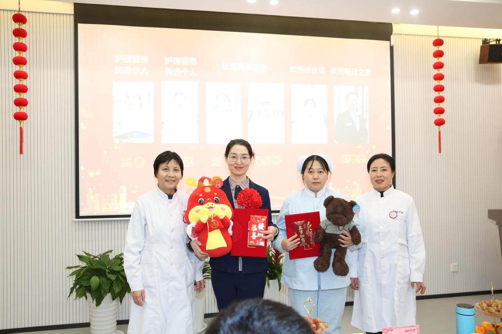 醫(yī)生代表周丹梅主任、護(hù)士代表王蕾護(hù)士長和青年醫(yī)生代表章哲發(fā)表獲獎感言