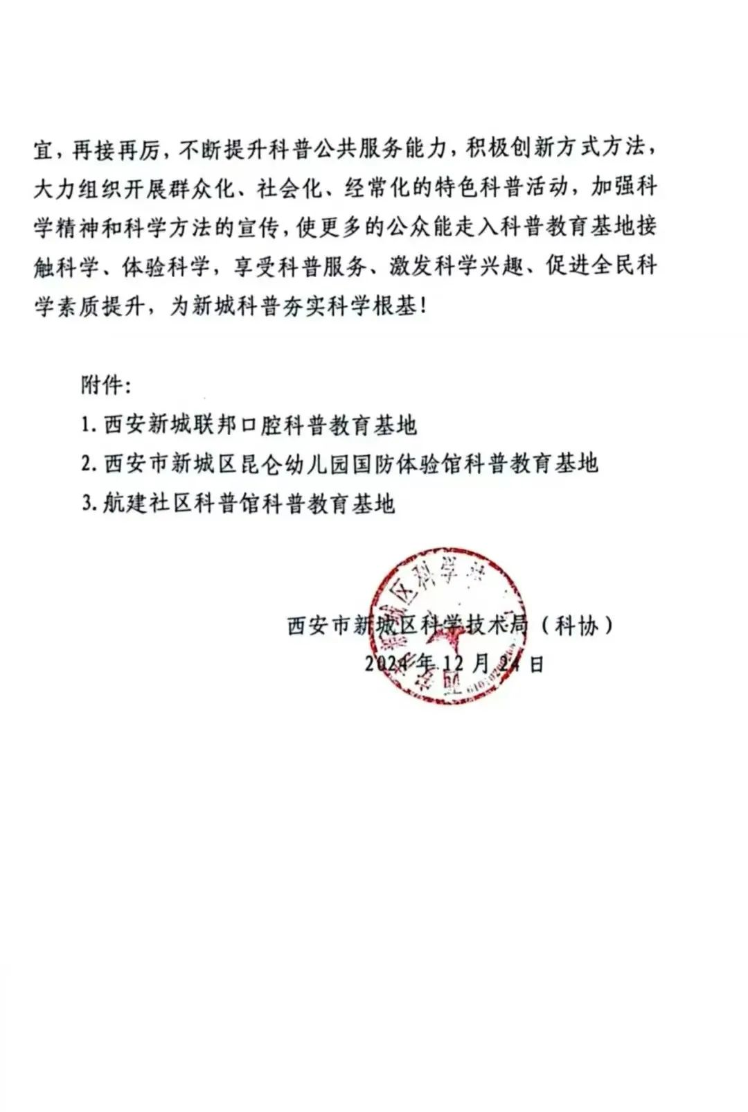 2025年2月20日,西安市新城區(qū)科協(xié)在2024年度科普工作總結(jié)暨2025年度科普工作部署會上,為新一批科普教育基地舉行了隆重的授牌儀式。西安聯(lián)邦口腔醫(yī)院正式被授予“新城區(qū)科普教育基地”稱號。