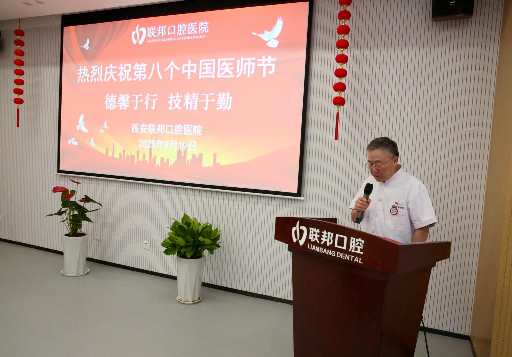 2025年8月19日下午,西安聯(lián)邦口腔醫(yī)院隆重舉行了第八個(gè)“中國醫(yī)師節(jié)”慶?;顒?dòng)?;顒?dòng)以“德馨于行 技精于勤”為主題,向全院醫(yī)務(wù)工作者致以節(jié)日的誠摯問候與崇高敬意。本次活動(dòng)由聯(lián)邦口腔醫(yī)院副院長馬振國教授主持,醫(yī)院領(lǐng)導(dǎo)班子成員、部分專家教授、各科室負(fù)責(zé)人、全體醫(yī)師及實(shí)習(xí)生代表齊聚一堂,共慶屬于醫(yī)者的榮耀時(shí)刻。