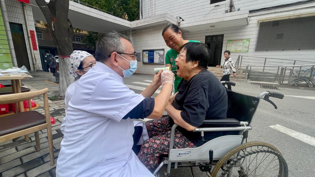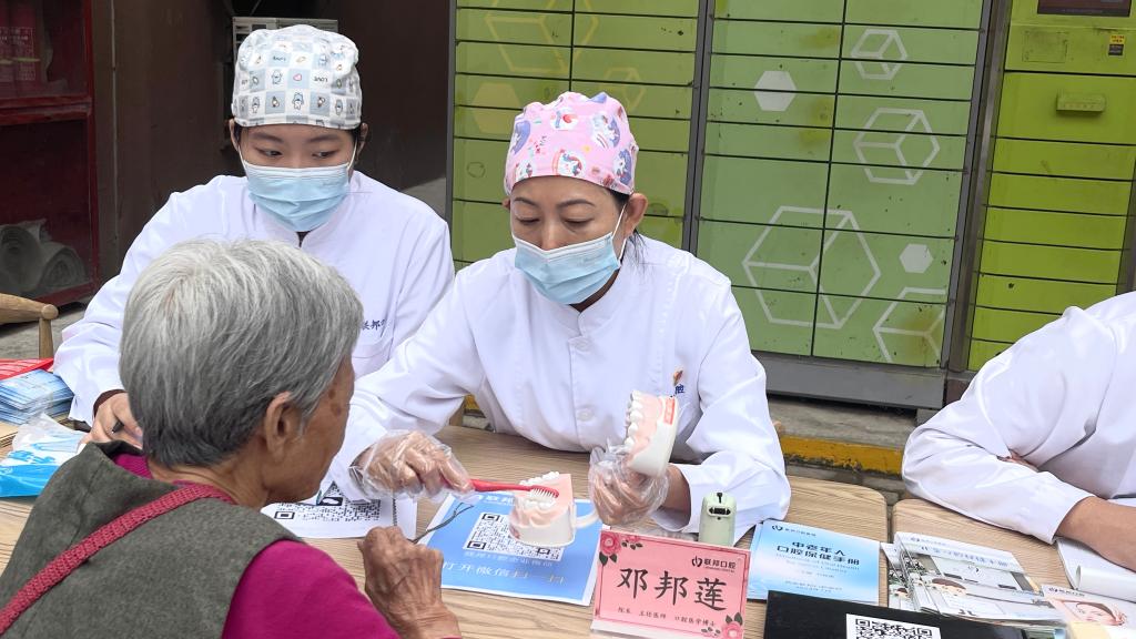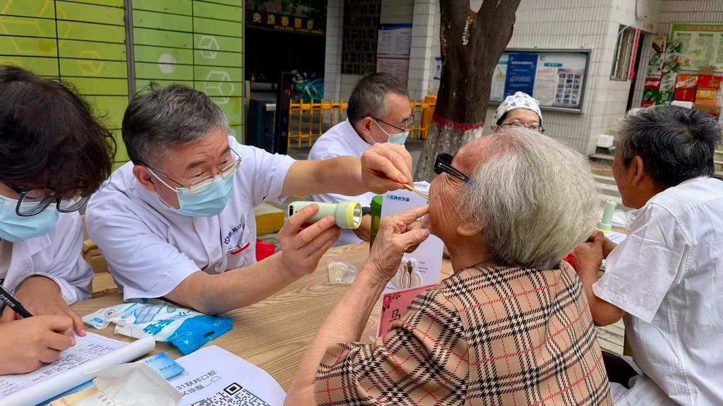 活動(dòng)現(xiàn)場秋意爽朗,暖意融融。鄧邦蓮院長與馬振國、李剛、劉斌三位教授組成的專家團(tuán)隊(duì),憑借精湛醫(yī)術(shù)與豐富臨床經(jīng)驗(yàn),為每一位咨詢的老兵提供免費(fèi)口腔健康檢查。他們耐心傾聽老兵訴求,細(xì)致檢查口腔狀況,針對牙齒松動(dòng)、牙周疾病等老年常見口腔問題,逐一制定個(gè)性化診療建議與防治方案;醫(yī)護(hù)團(tuán)隊(duì)還同步為有需求的老兵測量血壓,贈(zèng)送包含牙膏、牙刷及口腔護(hù)理指南的“愛心健康禮包”,將貼心關(guān)懷落到實(shí)處。