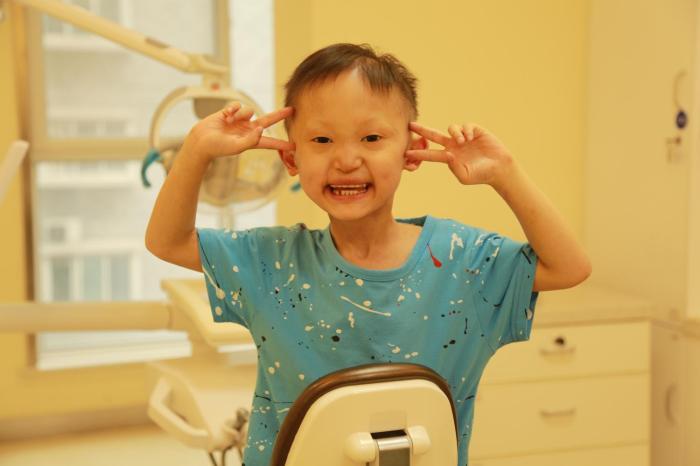 安裝好義齒后,浩浩吃蘋(píng)果,西瓜和正常小孩一樣,更可愛(ài)的是,他和其他小孩一樣可以開(kāi)心地張開(kāi)嘴,大聲地笑了,浩浩的朋友也多了,性格也變得更開(kāi)朗了。