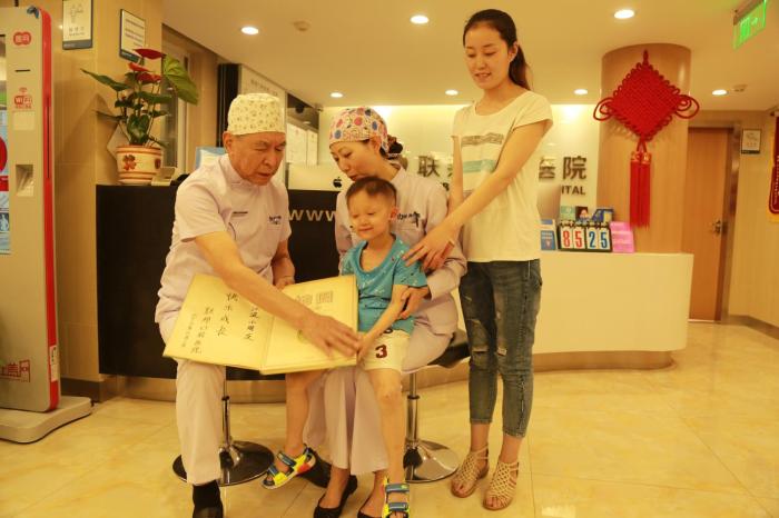 2016年經(jīng)過(guò)四處打聽(tīng),網(wǎng)上查找,打聽(tīng)到第四軍醫(yī)大學(xué)退休教授郭天文可以給孩子安裝義齒,解決浩浩的難題,就抱著試試看的態(tài)度,來(lái)到郭教授坐診的西安聯(lián)邦口腔醫(yī)院,得知浩浩的病情后,院長(zhǎng)鄧邦蓮和教授們根據(jù)會(huì)診結(jié)果,制定了全面的治療方案,義齒的材料、制作、安裝每一個(gè)環(huán)節(jié)都是教授和院長(zhǎng)親自把關(guān),同時(shí)院長(zhǎng)成立了愛(ài)心基金,對(duì)于先天無(wú)牙的兒童,免費(fèi)安裝義齒,不收取任何費(fèi)用,這讓浩浩一家非常意外和感動(dòng)。