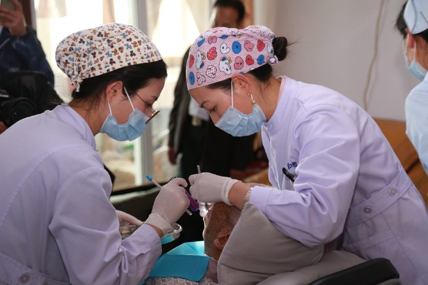 楊教授和鄧院長首先給老人做了一個口腔的全面檢查,在女兒的幫助下,老人很配合,檢查后發(fā)現(xiàn),老人由于愛吃糖,平時也不刷牙,局部牙齒已經(jīng)開始爛掉,治療難度非常大。經(jīng)過商量后,采用保守治療,首先開始清洗,為了方便上門給患者服務(wù),醫(yī)院采購了便攜式醫(yī)療床,牙科移動治療機,讓患者減少痛苦,享受和醫(yī)院一樣的治療。